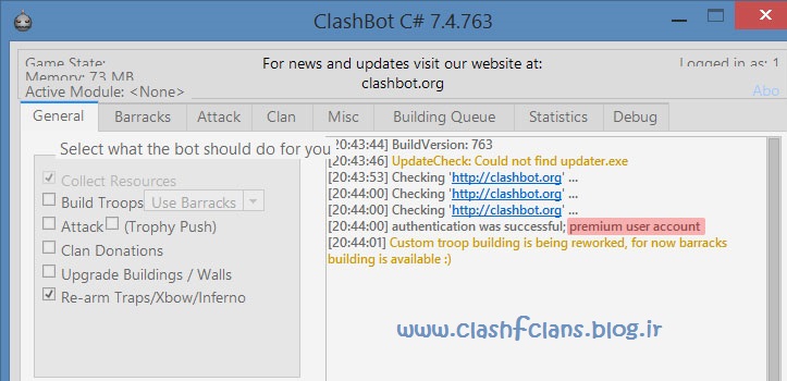 - حال فایل ClashBot.exe را اجرا کنید و با یک اکانت دلخواه مثلا 1 و 1 وارد شوید.